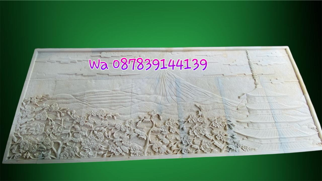 seperti contoh gambar dibawah relief dengan nuansa bunga sakura, gunung fuji dan pagoda Jepang. dengan proses pengerjaan kurang lebih 3 minggu , untuk di pasang di salah satu klinik kecantikan di daerah Ponorogo.